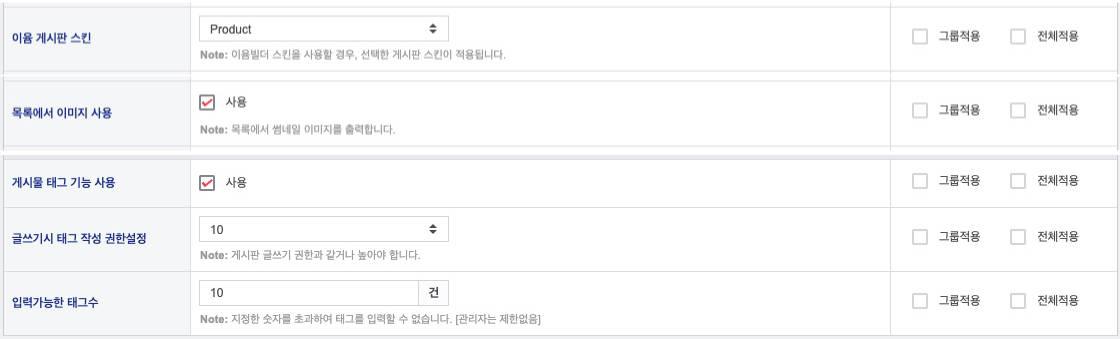 게시판 추가 설정(관리자 - 테마설정관리 - 게시판 추가설정)
