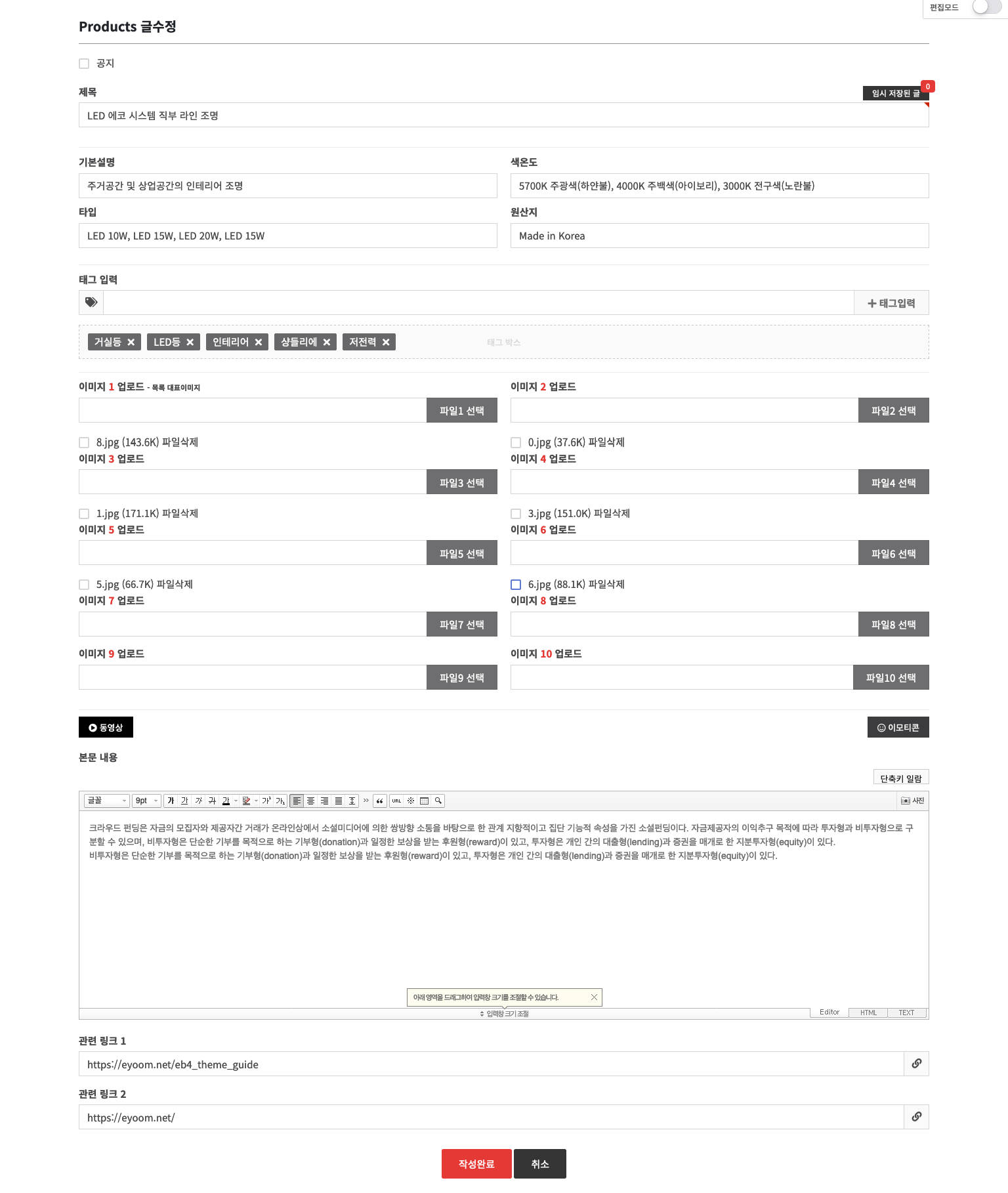 - · 각 항목 값을 입력 및 이미지 등록합니다.