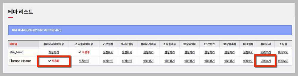 - 테마 설치 후 보여지는 화면은 데모 사이트의 가짜 데이터들로 메뉴, 게시판, EB슬라이더/콘텐츠/최신글등을 사이트 용도에 맞게 설정하기 바랍니다.