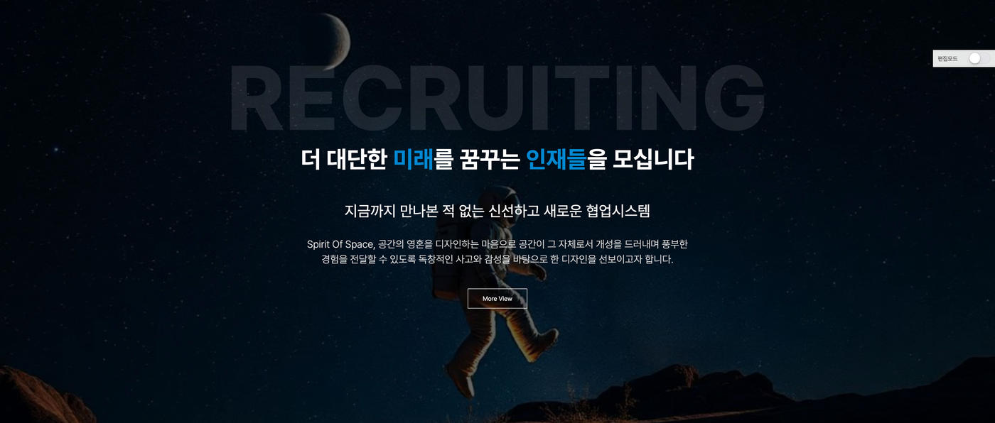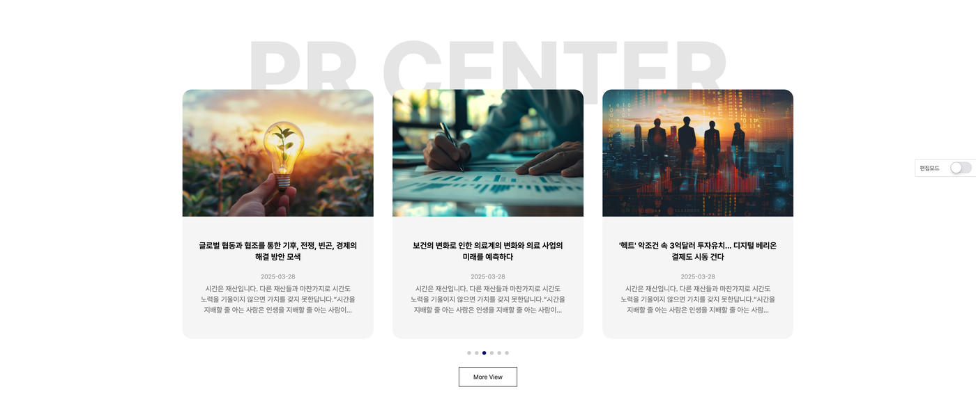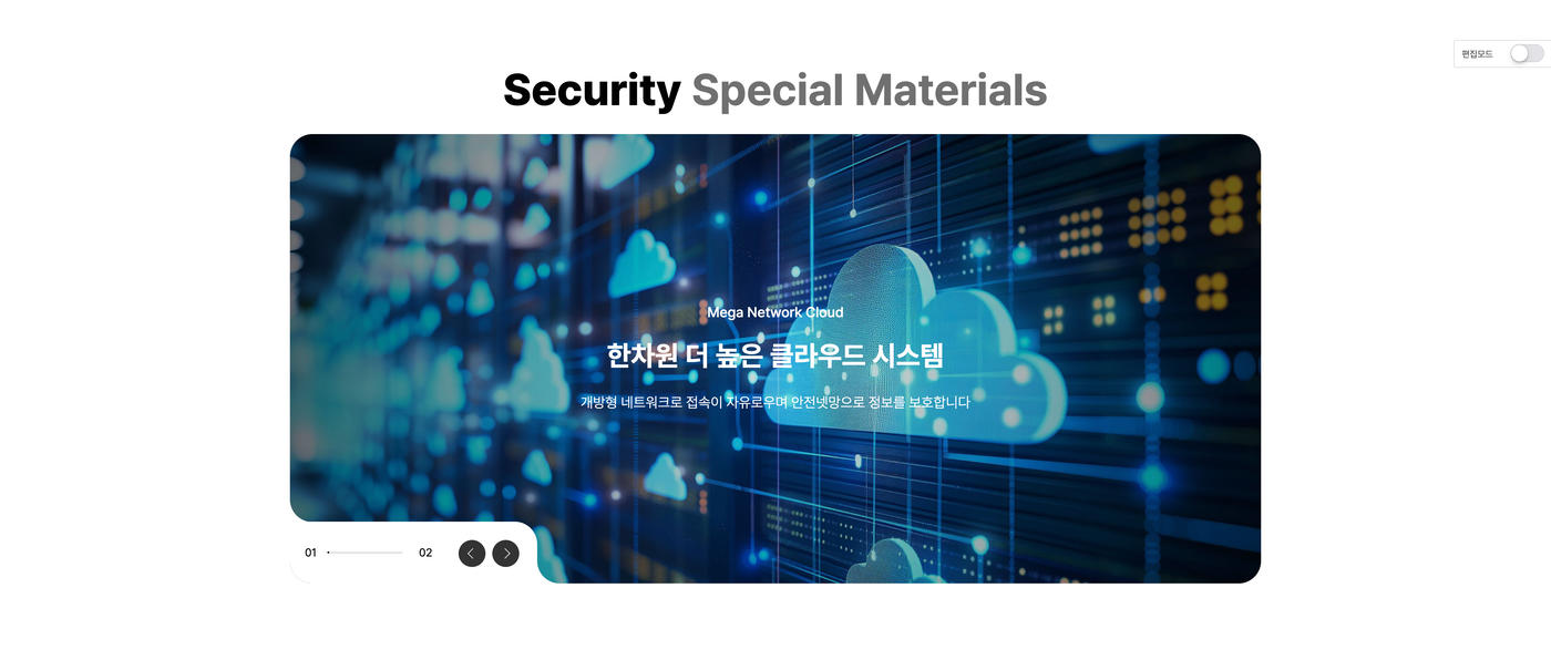 - 메인과 서브페이지에서 편집모드를 통해 손쉽게 내용 및 이미지 수정이 가능합니다.