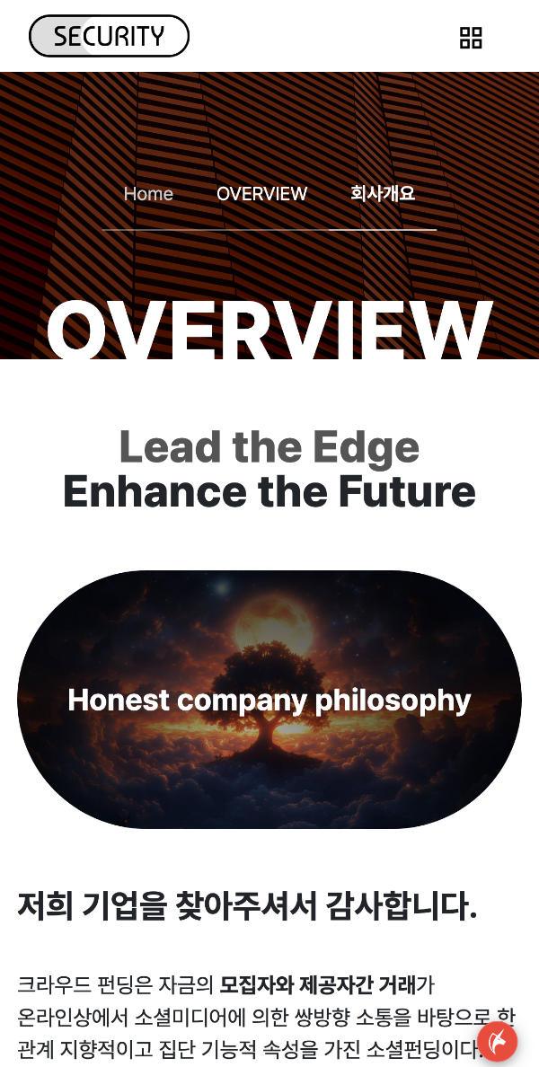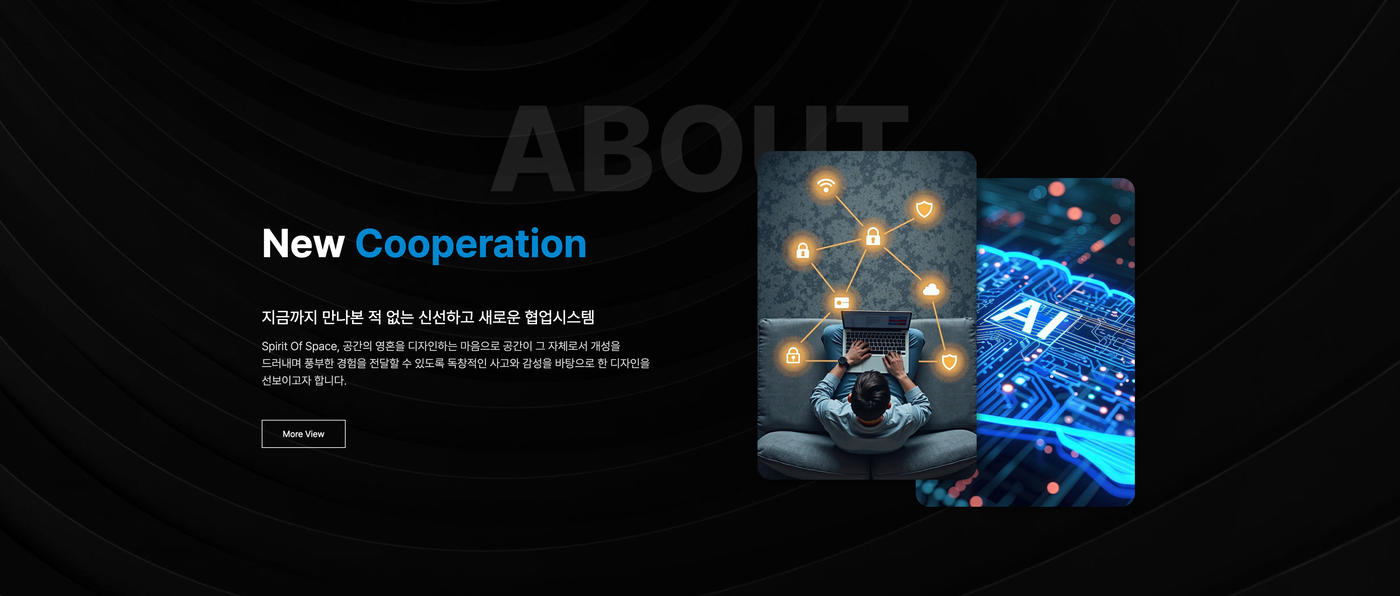data-scroll-container: 전체 스크롤 영역을 지정합니다. data-scroll-section: 스크롤이 감지될 개별 섹션을 지정합니다. data-scroll: 해당 요소에 Locomotive Scroll 효과를 적용합니다. data-scroll-speed="N": N 값에 따라 스크롤 속도를 조절하여 패럴랙스(Parallax) 효과를 구현할 수 있습니다. (기본값은 1) - 서브페이지 애니메이션은 aos 플러그인을 사용했습니다.