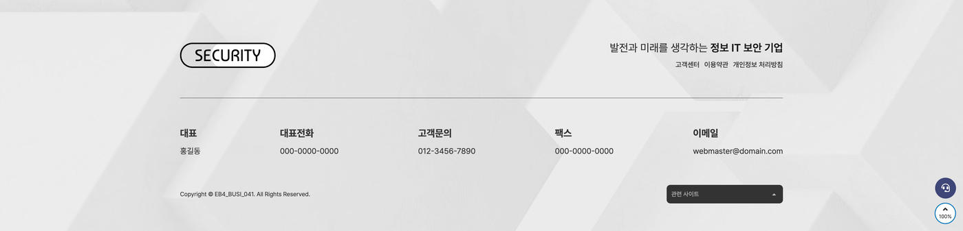 theme/eb4_busi_041/skin/ebcontent/bg_banner/ebcontents.skin.html.php - · 푸터 메뉴 : 마스터 제목입력, 텍스트 필드 #1, 연결주소 #1 입력.